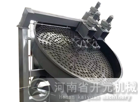 圓盤造粒機(jī)是有機(jī)肥行業(yè)的常用設(shè)備之一,一般適用于中、低濃度,小規(guī)模的生產(chǎn),成球盤調(diào)整到40°-55°之間。由電機(jī)減速機(jī)帶動(dòng)齒輪從而加入混配好的原料肥。由于粉肥和圓盤旋轉(zhuǎn)而上升,又在重力的作用下向下滾動(dòng),在以上幾種力的作用下,盤內(nèi)物料逐漸形成基核直至達(dá)到成品顆粒,由圓盤邊溢出。本機(jī)具有成球率高、顆粒圓潤、強(qiáng)度大、防腐、操作直觀、維修方便等特點(diǎn)。